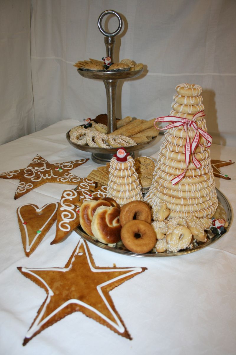 Goro, strull. berlinerkranser, serinakaker, sandkaker, brune pinner, terteringer, julekjeks, julebrød, stollen, marvposteier, pepperkaker, kransekaker, smultringer, totenkringler, kryddekake, fyrstekake, mor monsen...